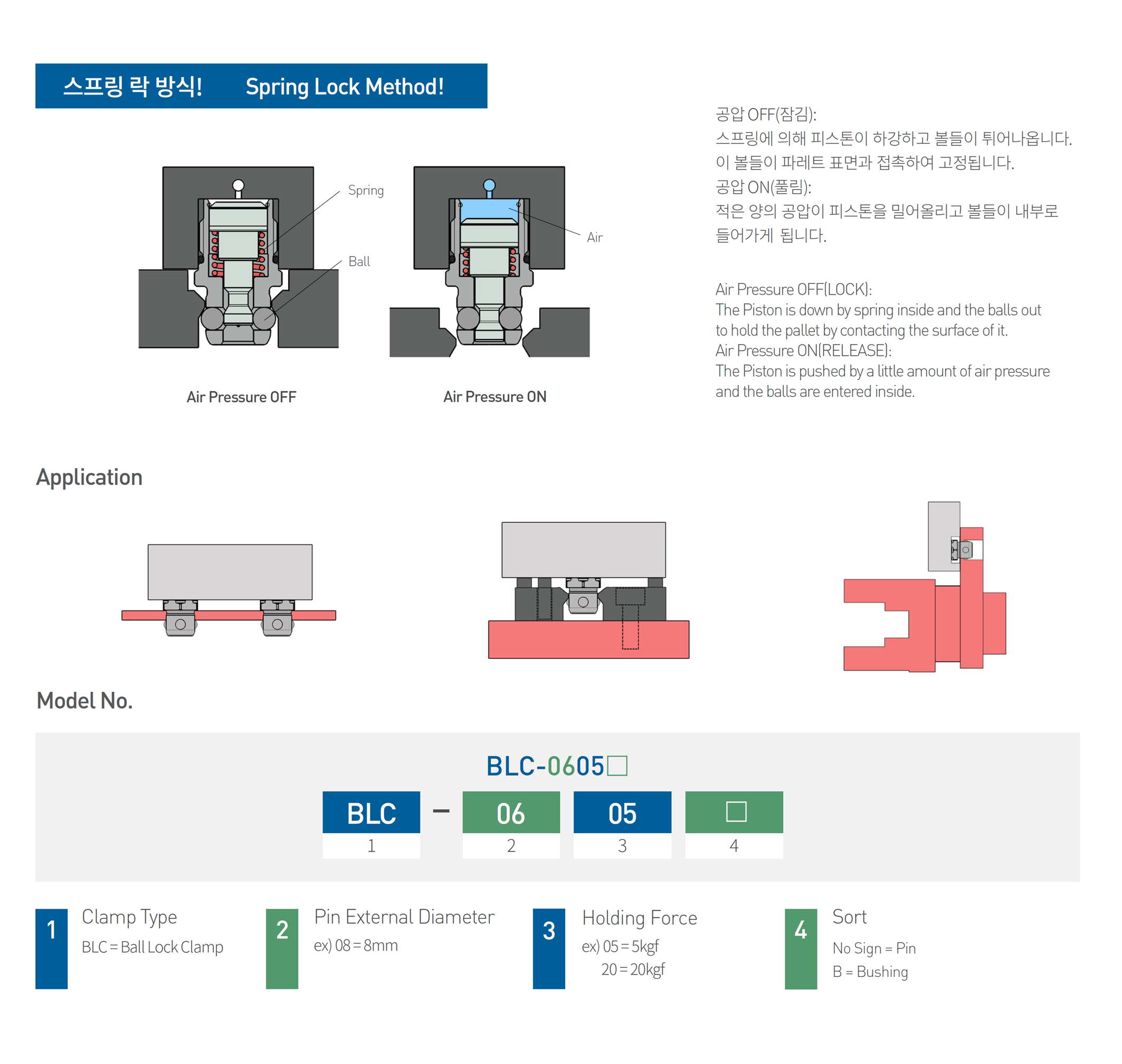 | Model No. | Holding Force(kgf) | Fluid | Release Air Capacity(㎤) |
